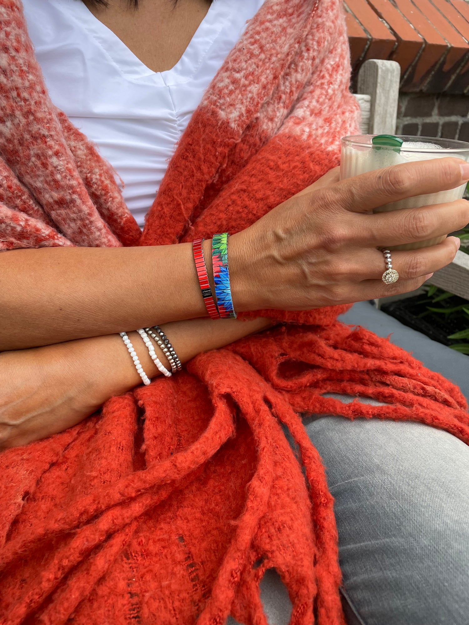 Slim braceletsZe is een tikkeltje romantisch, houdt van klassieke kleuren en mixt de superskinny en slim bracelet hier stijlvol met elkaar.